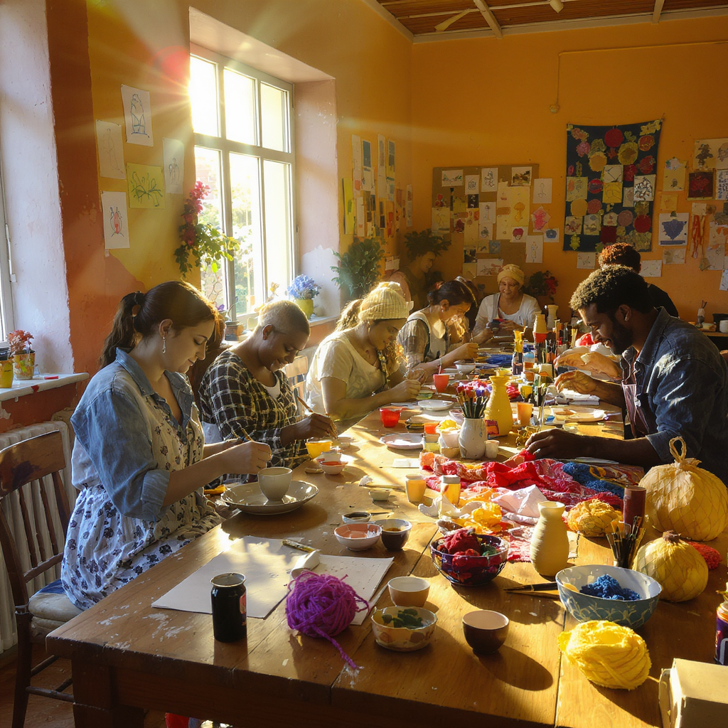 Artesanato, música, pintura, teatro, leitura e atividades que estimulam expressão, criatividade e desenvolvimento social.